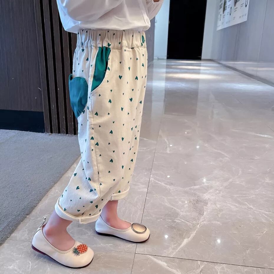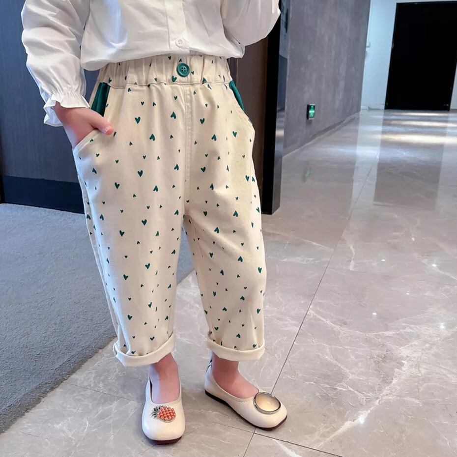 バックに大きなグリーンのハートポケットがポイント♡ᐝ小さなグリーンのハートも散りばめられていて360°可愛いパンツです*✲
