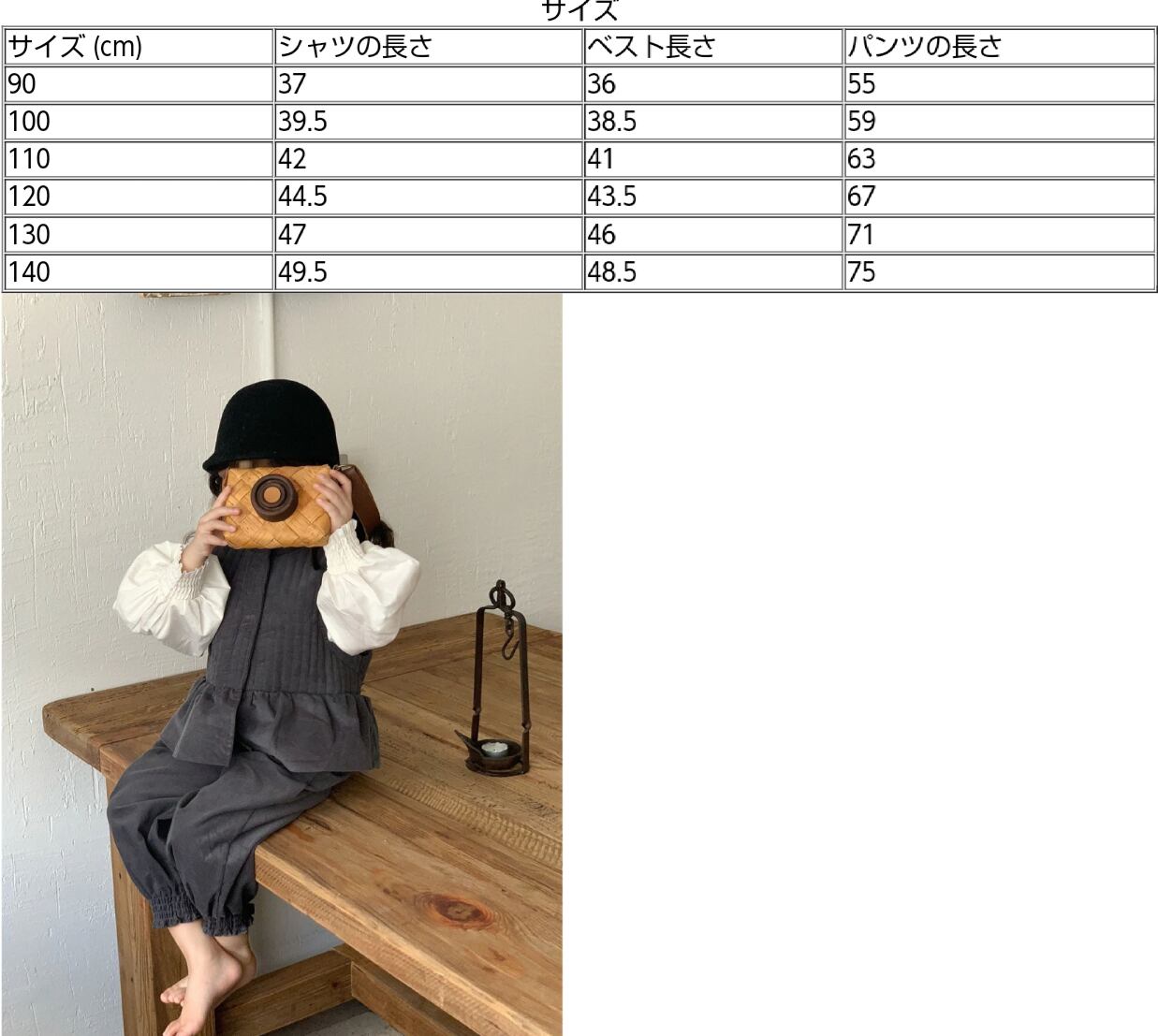ぽわん袖シャツ コーデュロイベスト&パンツ Set up