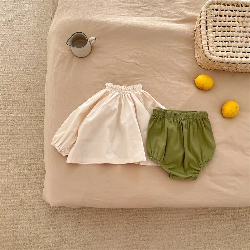 スタンドフリルカラートップス+ブルマパンツ Set up