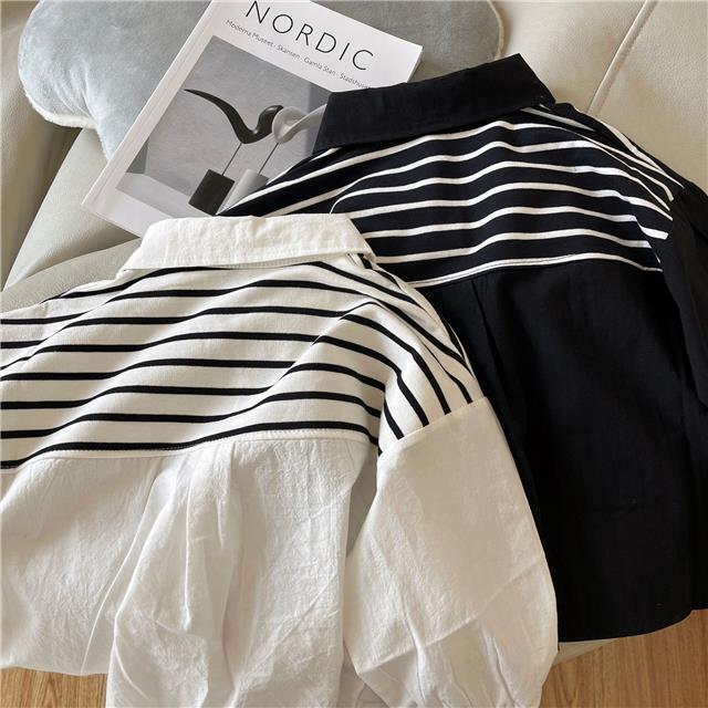 肩周りと手首にボーダーが配色されています✧*。カットソー素材で袖は捲り上げやすいのも嬉しいポイントです‧⁺ ⊹˚