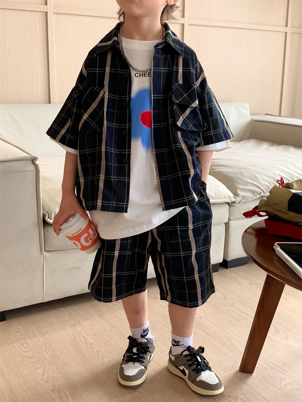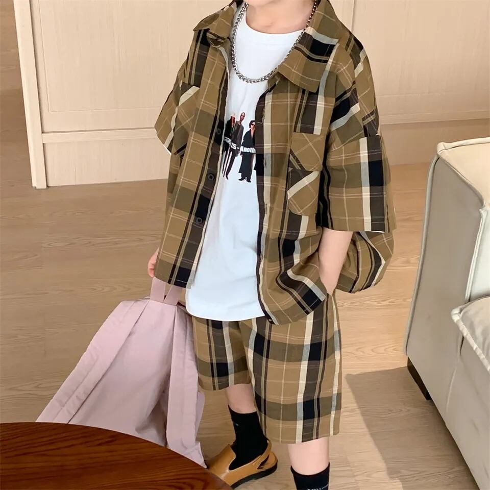 チェック柄サマーシャツ+パンツ Set