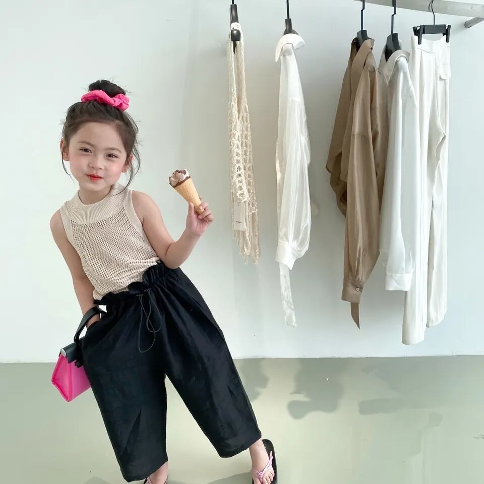 夏仕様のワイドパンツです✧*。ウエストにはアジャスターがあり、サイズ調節も楽ちんです⑅*裏地無しですが、目立った透け感は無いようです⸝⸝꙳