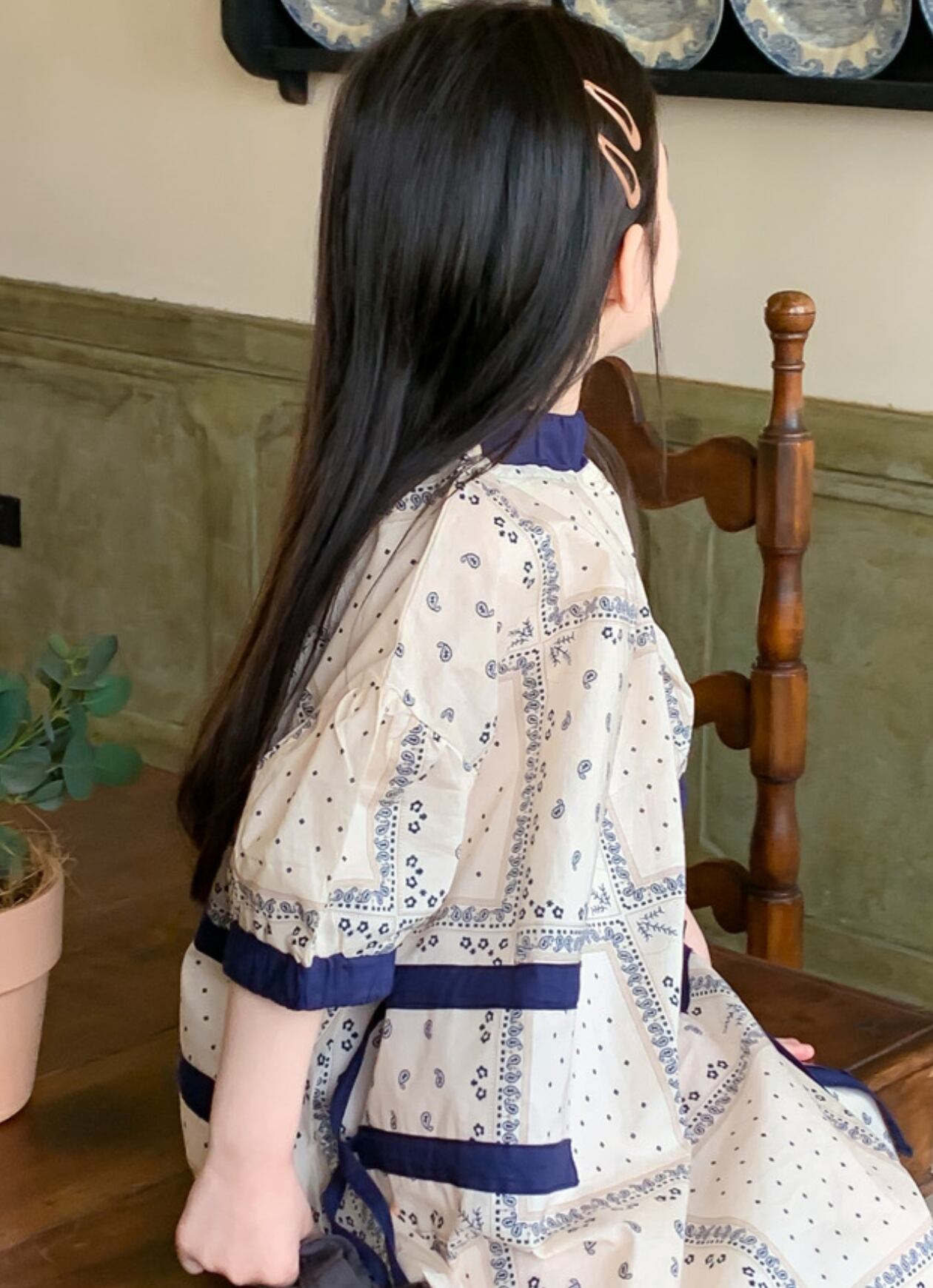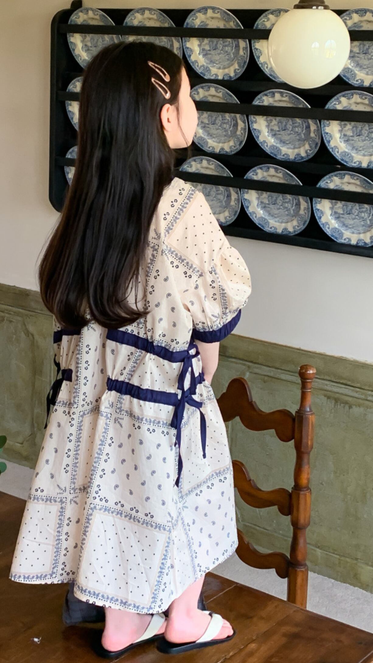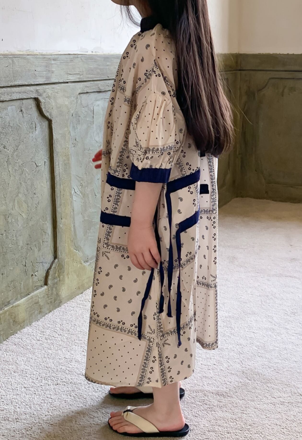 テロンとした生地でゆったりしたシルエットですが襟、袖、リボンのネイビーがキチンと感もあり、コーデの主役になります⑅*