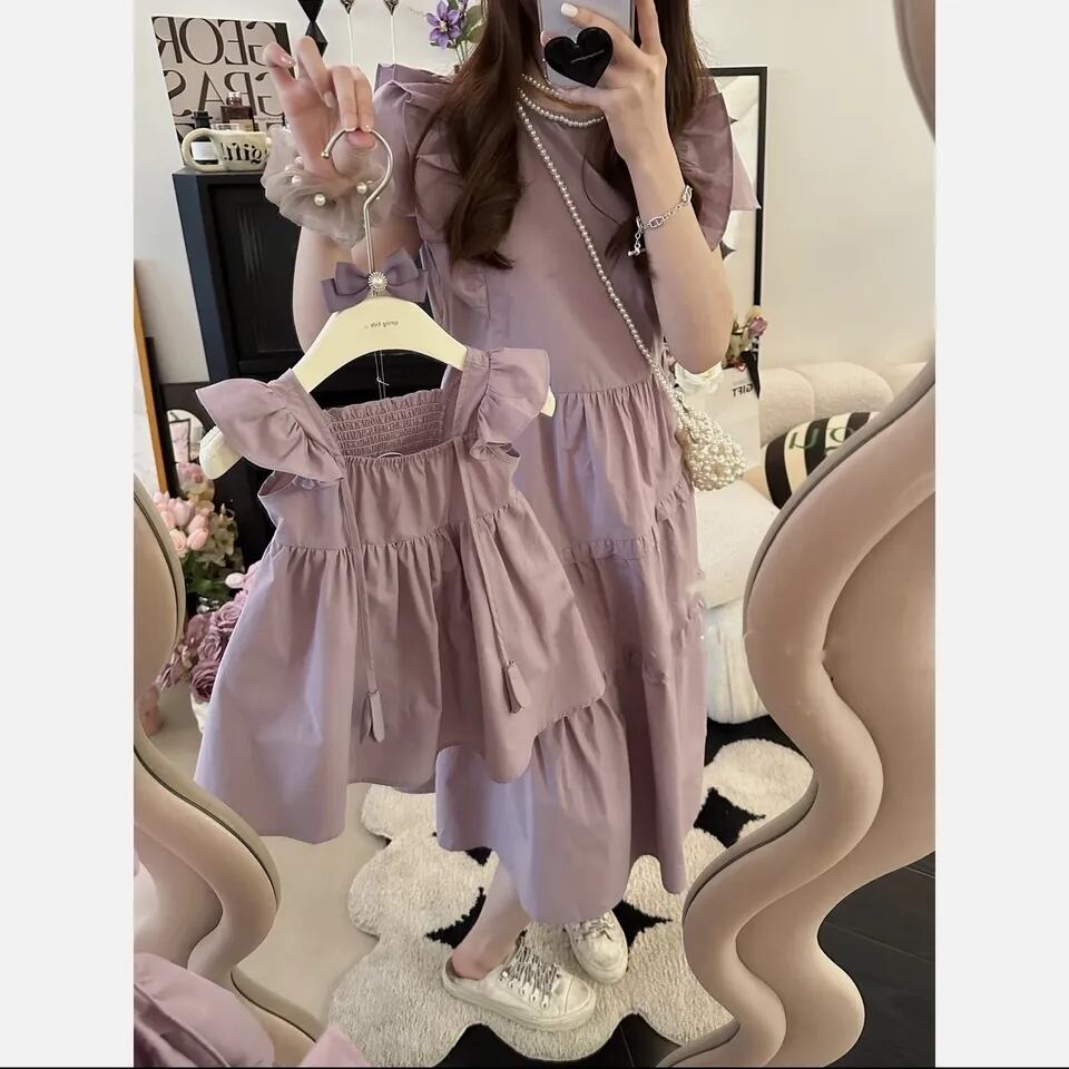 ピンクのようなパープルのような、女の子らしさとちょっぴり大人っぽさも感じられるワンピースです⑅*ママとのお揃い出来るのも嬉しいですね⌖˚