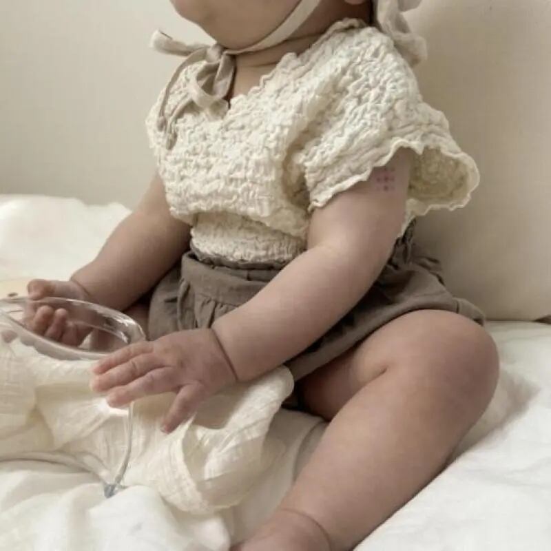 伸縮性のあるリップルTは肌にピタっとなりにくいのでベタつきにくいのが嬉しいですね‧⁺ ⊹女の子男の子問わず着用して頂ける使いやすいカラー展開なのも◎