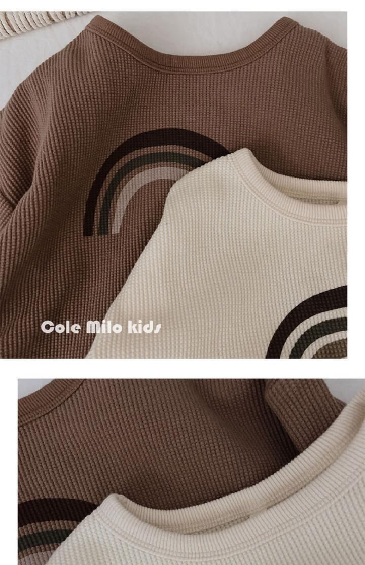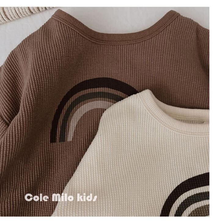 cream. coffeeのワッフルカットソーにシックなレインボープリント⌖˚ちょっぴり大人な雰囲気で着れちゃうトップスですᕱˎˊ˗