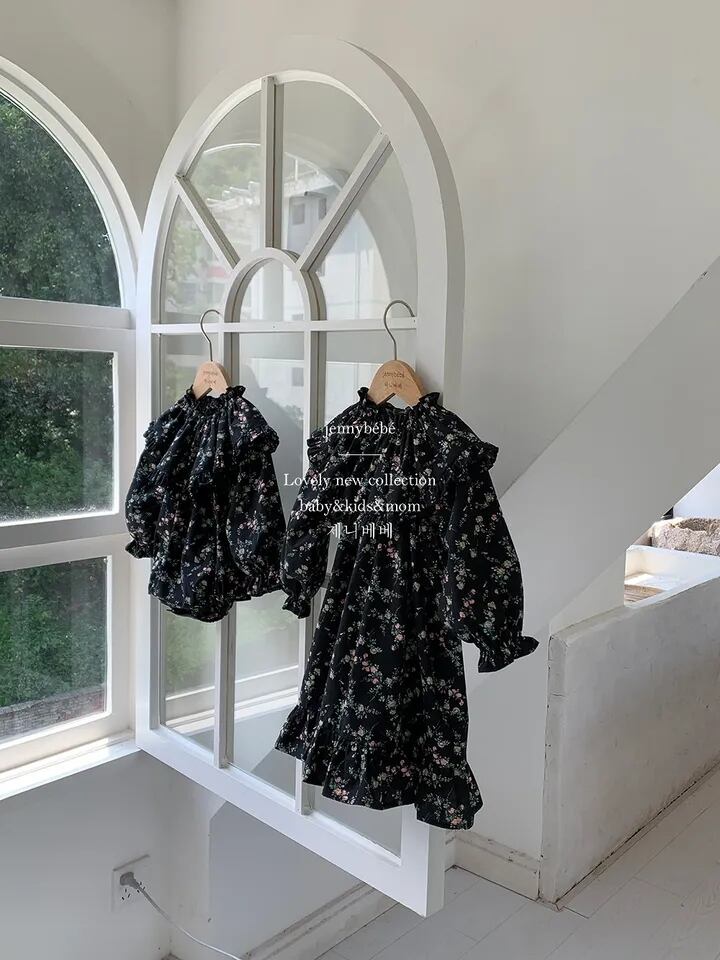 華やかなリバティ柄もブラック地で大人っぽさも⑅*カーディガンやタイツなどとの相性も良く、歳の離れた妹ちゃんともお揃い出来るのも◎