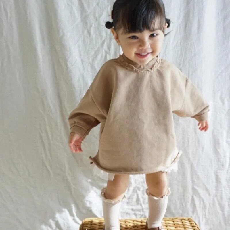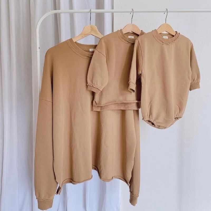 春秋、インナー+で冬もご家族揃ってお揃い出来るトップスです‧⁺ ⊹˚生地も分厚すぎず、ルーズなシルエットと切りっぱなしデザインが◎