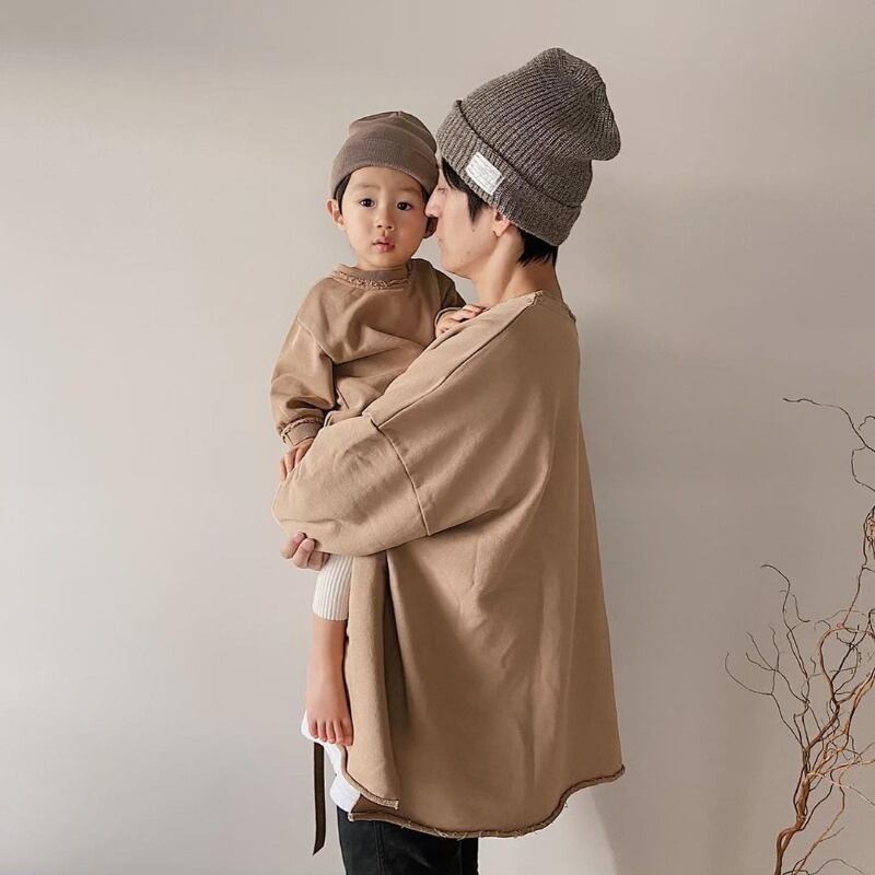 春秋、インナー+で冬もご家族揃ってお揃い出来るトップスです‧⁺ ⊹˚生地も分厚すぎず、ルーズなシルエットと切りっぱなしデザインが◎