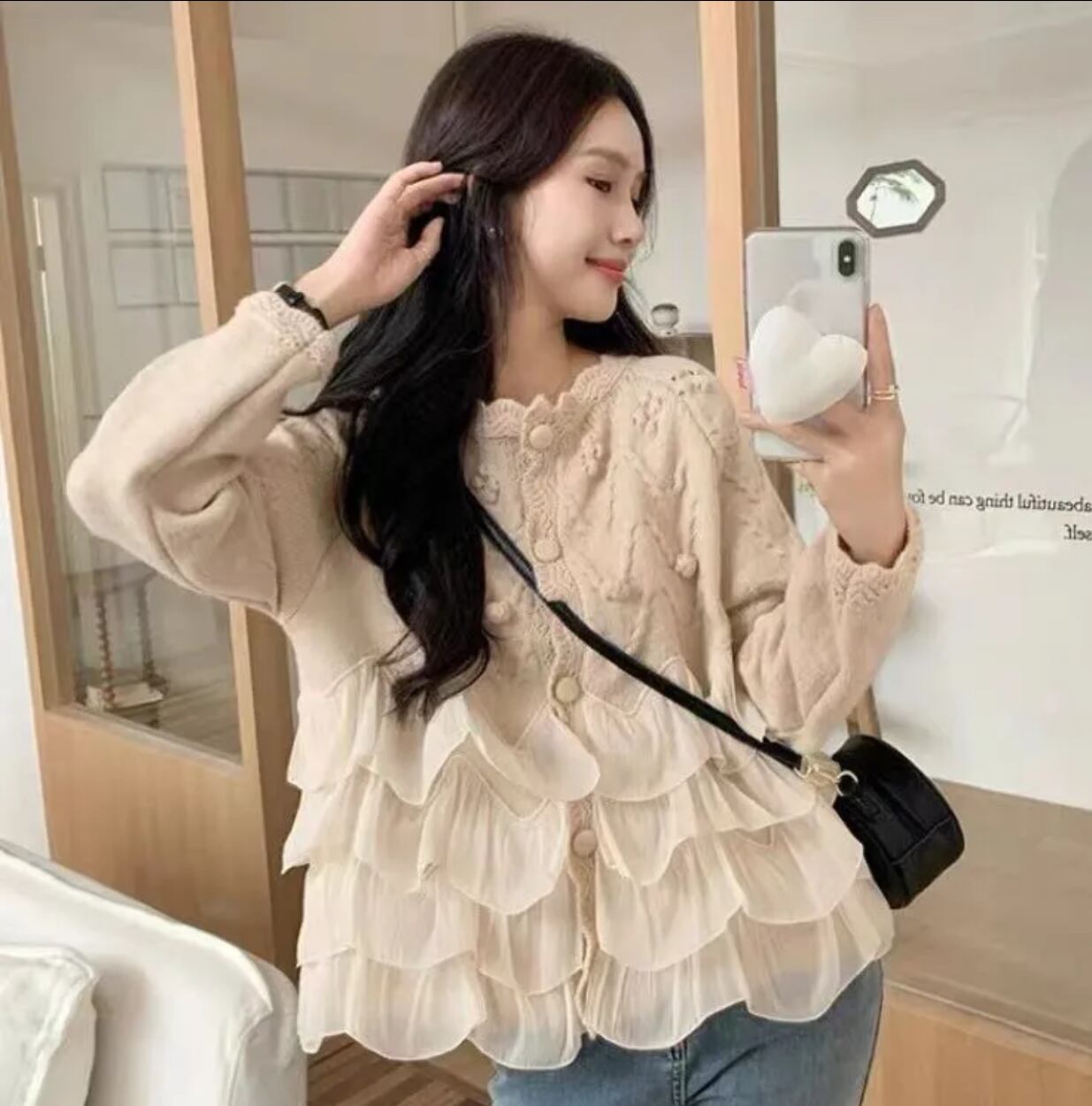レイヤーフリルニットカーディガン/トップス