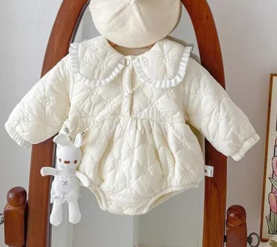 フラワーキルティングロンパースアウター うさぎさんも一緒