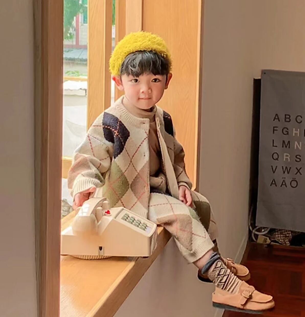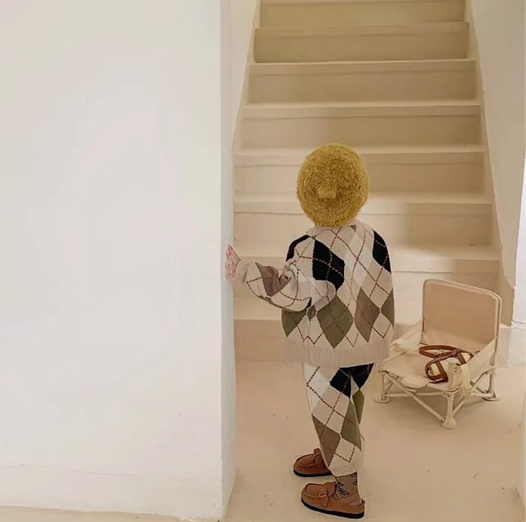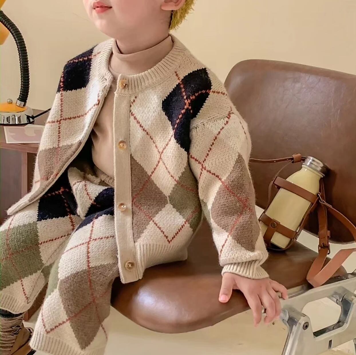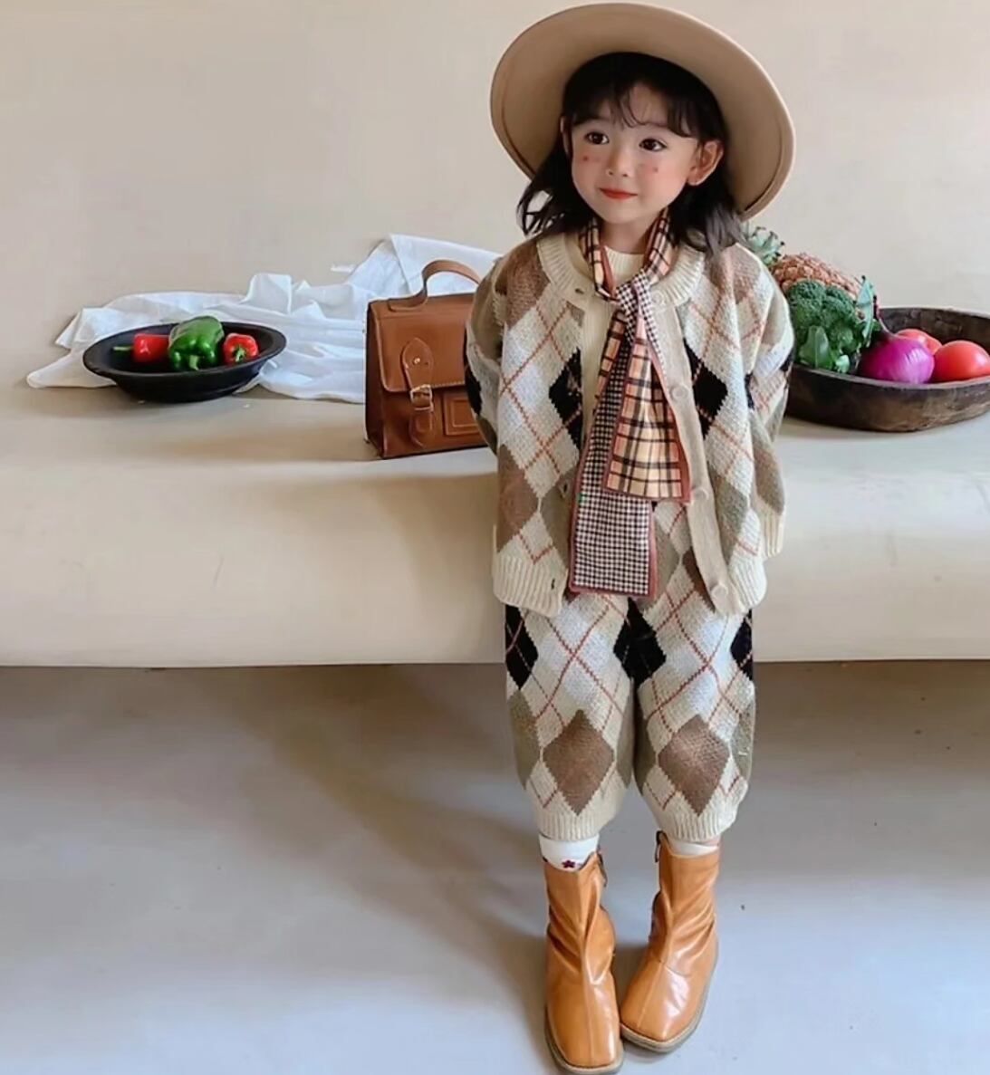 性別関係なく着用頂けるSet upです⌖˚冬らしいアーガイル柄⧉ パンツの半端丈からチラリとのぞく靴下やタイツがまた可愛いですˊ˗