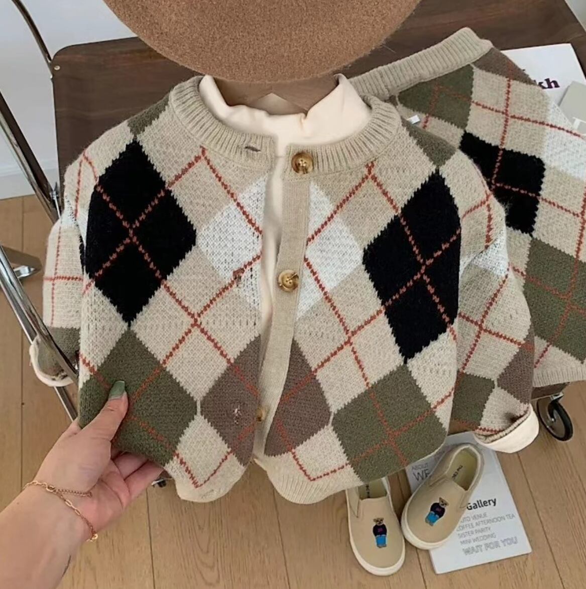 アーガイル柄ニット Set up