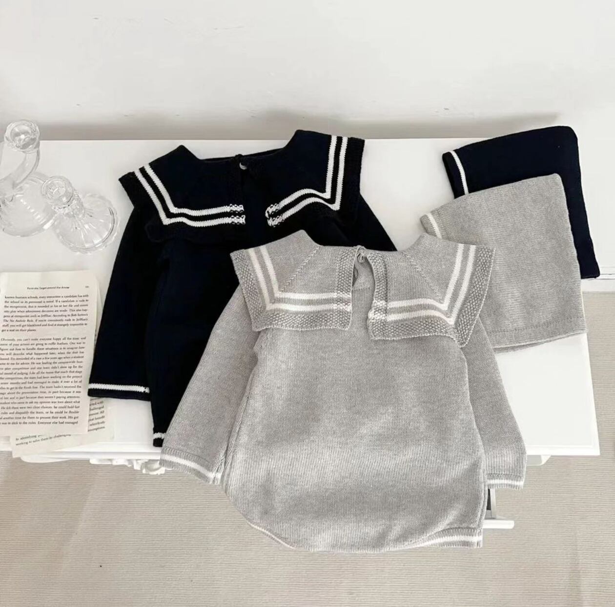 セーラーカラーは不動の人気. •* 帽子付なのが嬉しいですね⌖˚このSetでコーデの完成ですꕀ꙳