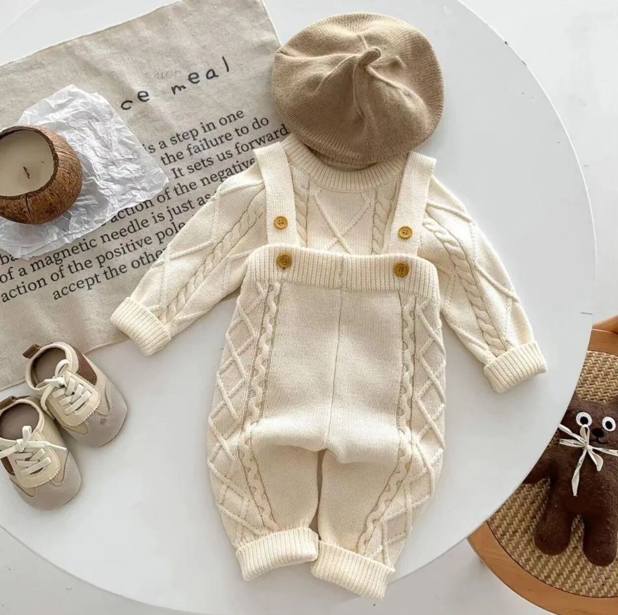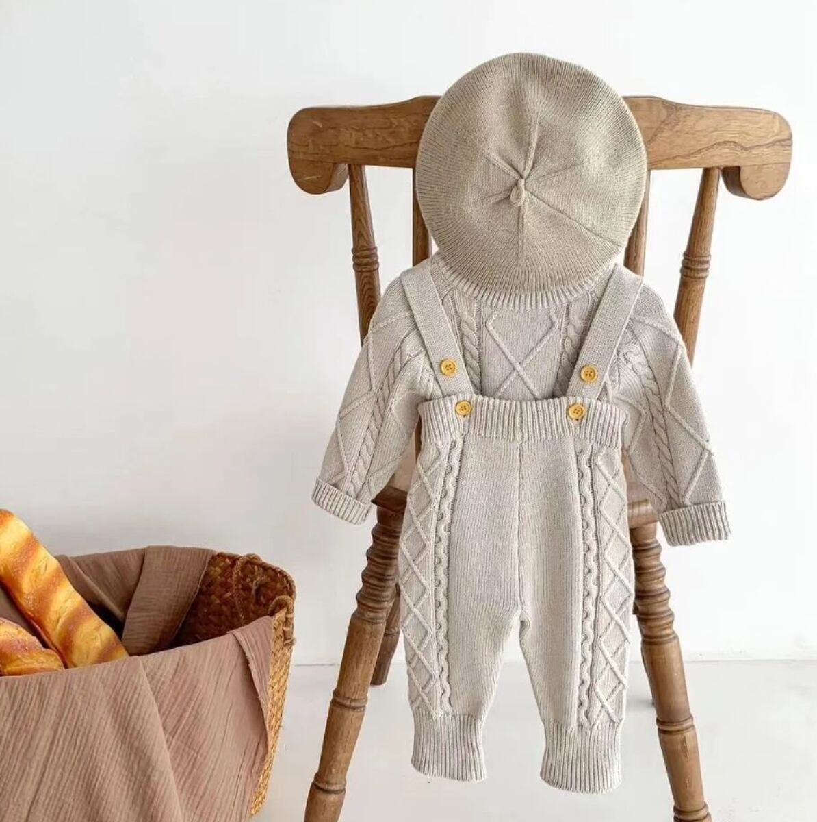 模様編みニット+ロンパース Set