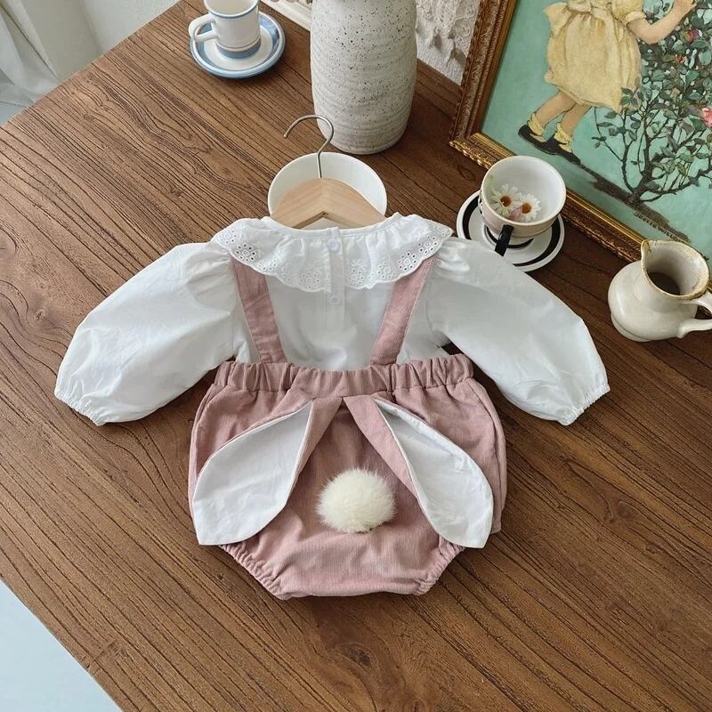 まるでうさぎちゃんサロペット+フリル襟シャツ Set