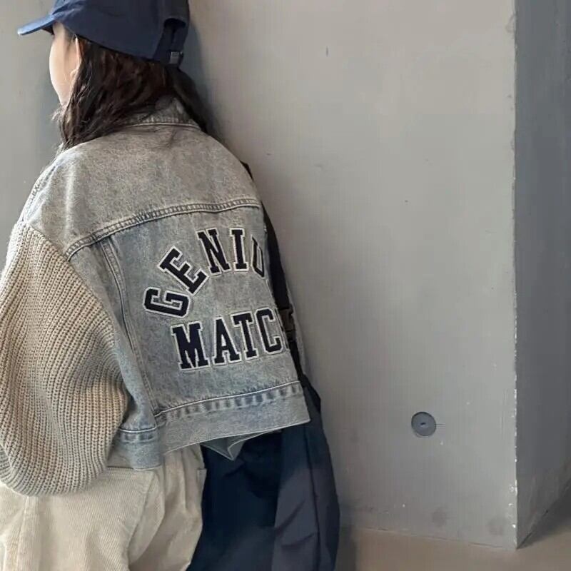 スリーブニット切り替えデニムジャケット