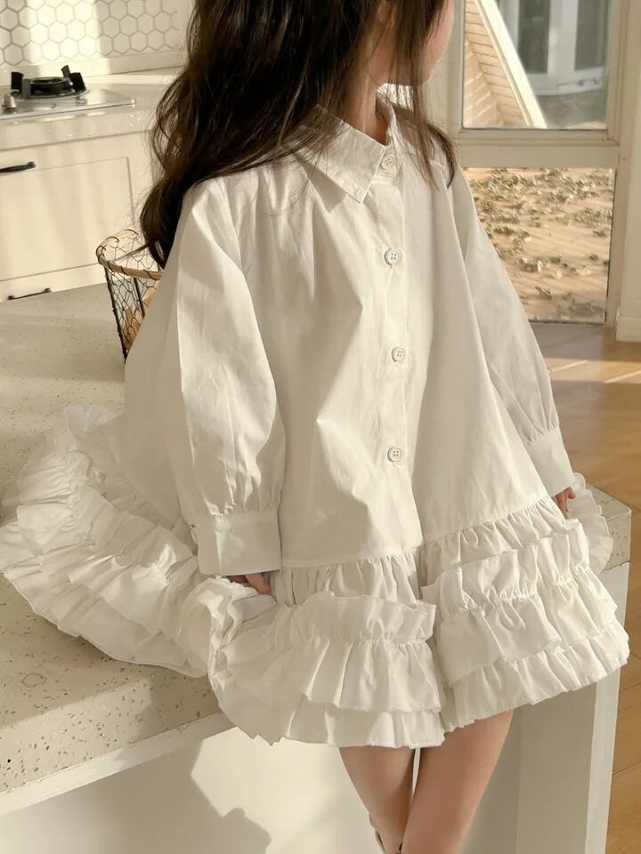 Aライン+ティアードフリルが女の子らしく、ついクルッと回りたくなる可愛さ満点の1着です✧*フリル部分にボタンはありません.